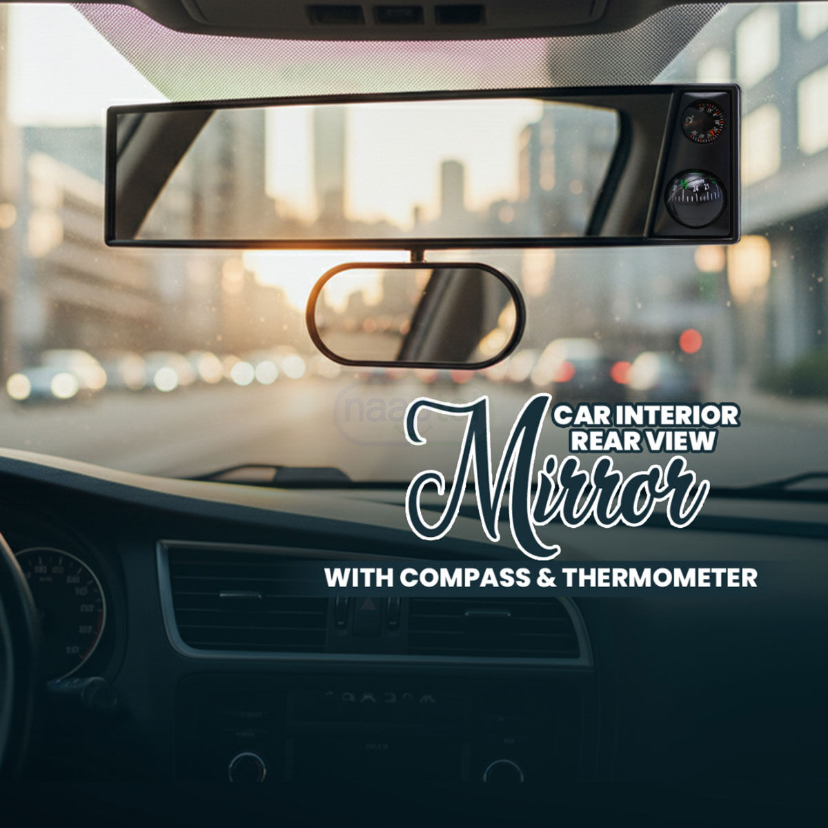 Upgrade your driving experience with this Car Interior Rear View Mirror with Compass & Thermometer. Its wide rectangular design gives you a broader, glare-free view of the road behind. The built in compass keeps you oriented while the thermometer displays real time temperature. An attached oval blind-spot mirror ensures maximum safety in traffic. Simply clip and drive, installation takes seconds, performance lasts long.