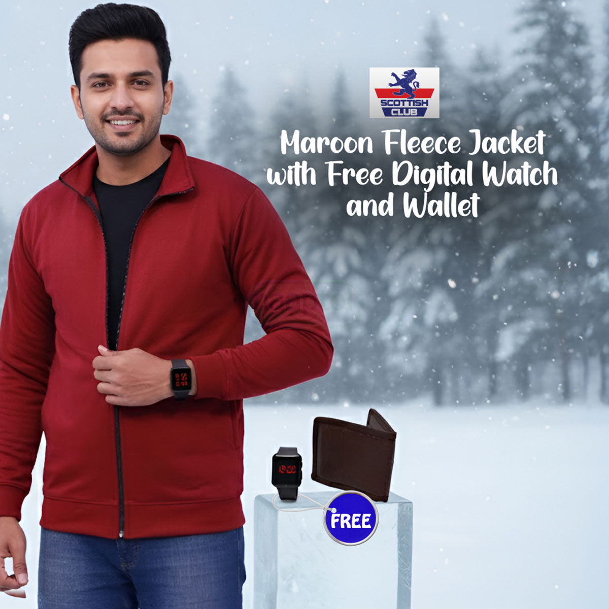 - Maroon Fleece Jacket with Digital Watch and Wallet Free - Get unbeatable winter comfort with a stylish fleece jacket and two handy freebies