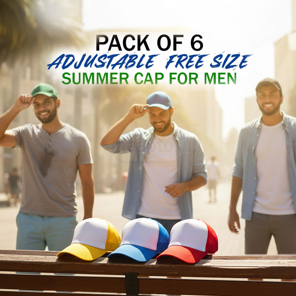 LIGHTWEIGHT COMFORT FOR THE TOUGHEST SUN -Pack of 6 adjustable free size summer cap for men(SCM1)