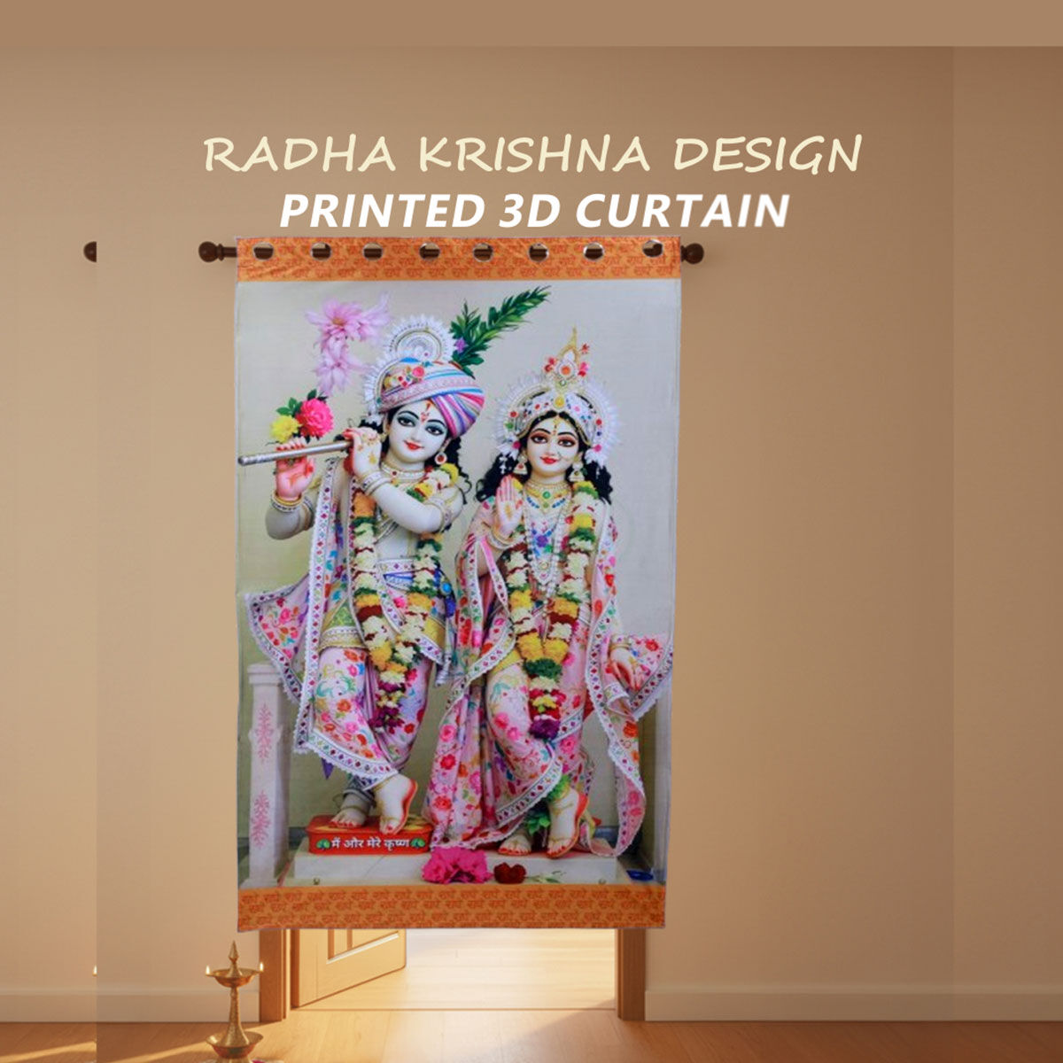 DIVINE GRACE IN EVERY SPACE -Radha Krishna Design Printed 3D Curtain (CU15)