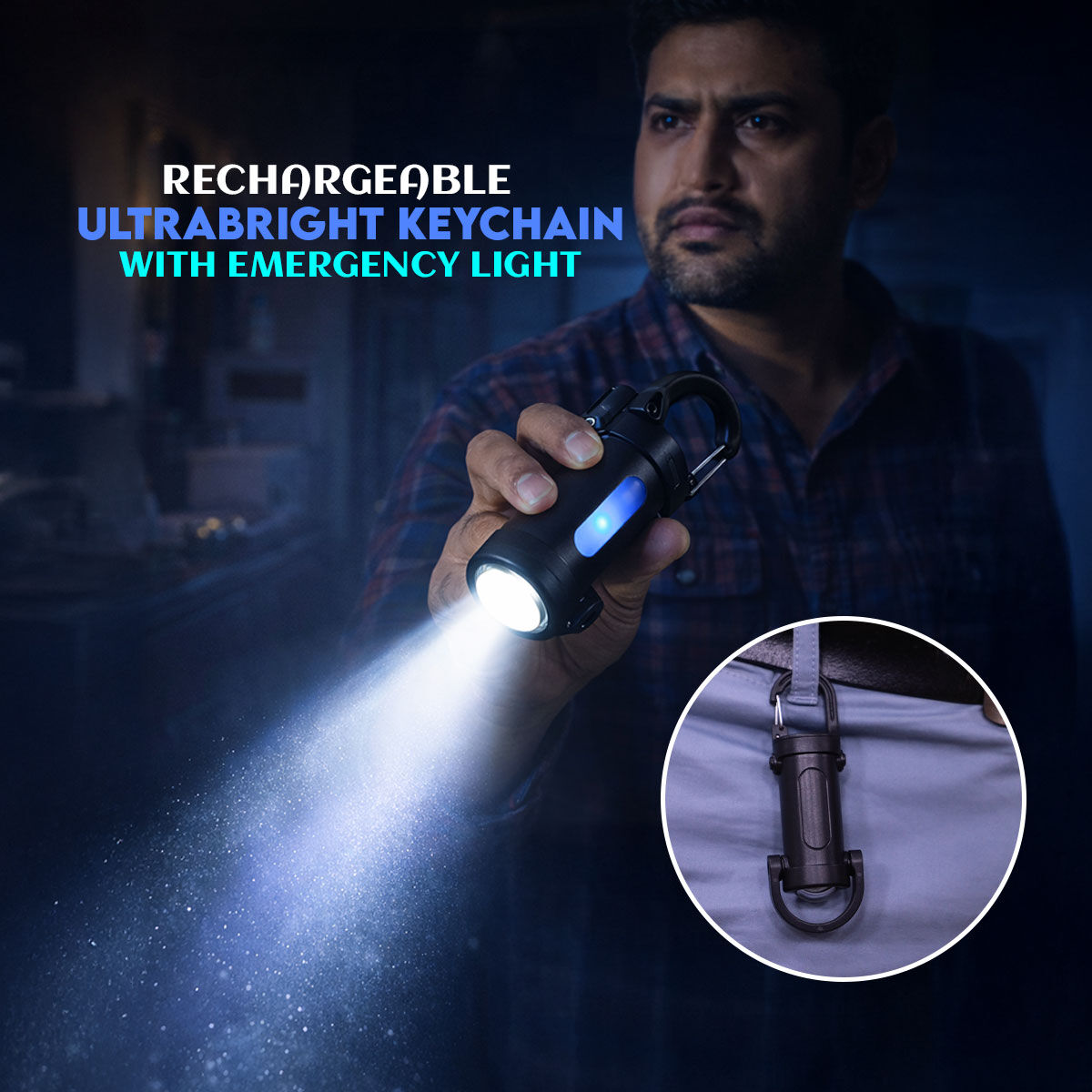 EMERGENCY READY LIGHT - Rechargeable Ultrabright Keychain Flashlight With Emergency Light (LL46)