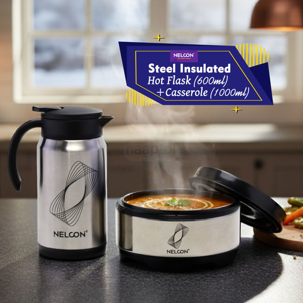 Steel Insulated Hot Flask (600ml) + Insulated Casserole (1000ml) (1C1F1)