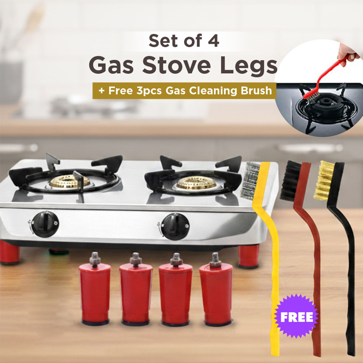 STRONG LEGS FOR A STABLE STOVE -Set of 4 Gas stove Legs + Free 3pcs Gas Cleaning Brush (GAS4)