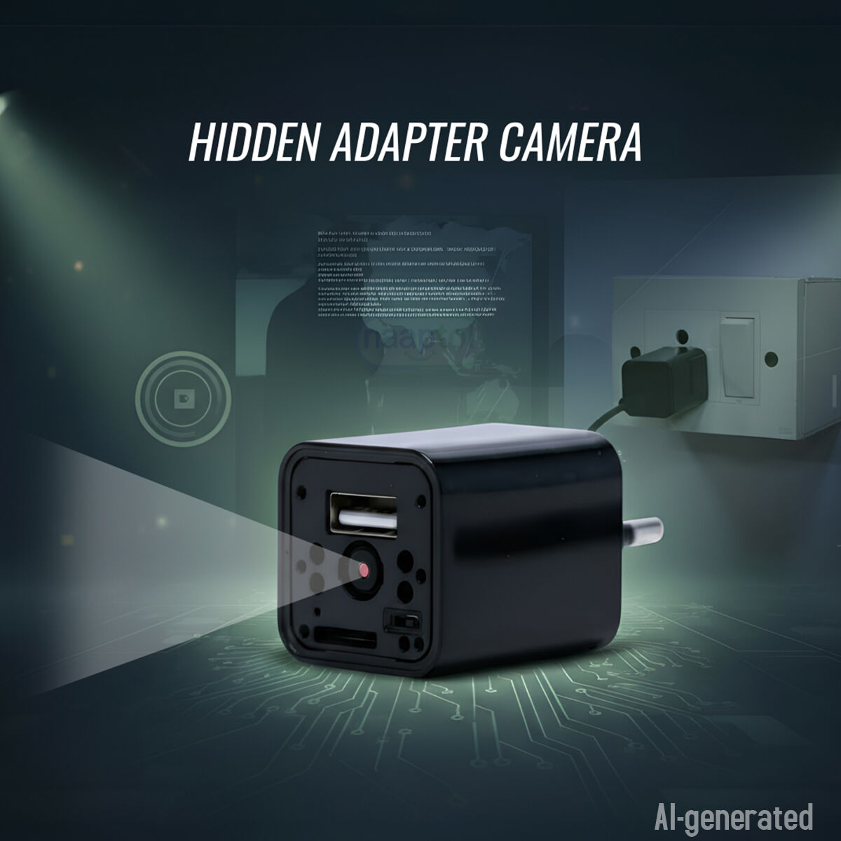- A spy adapter camera is a type of hidden camera discreetly built into a functional USB wall charger
